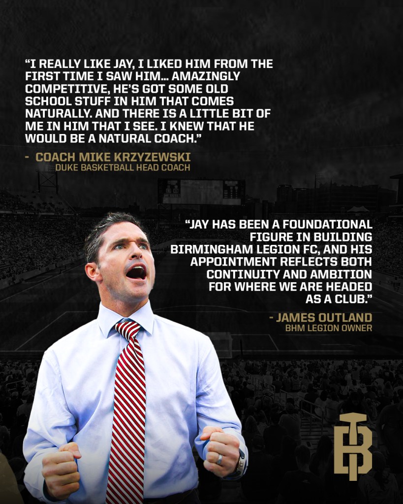 “Jay has been a foundational figure in building Birmingham Legion FC, and his appointment reflects both continuity and ambition for where we are headed as a club,” said Owner James Outland. “He understands this market, this organization, and what it takes to compete at a high level. We are confident in his leadership as we move into the next chapter.”