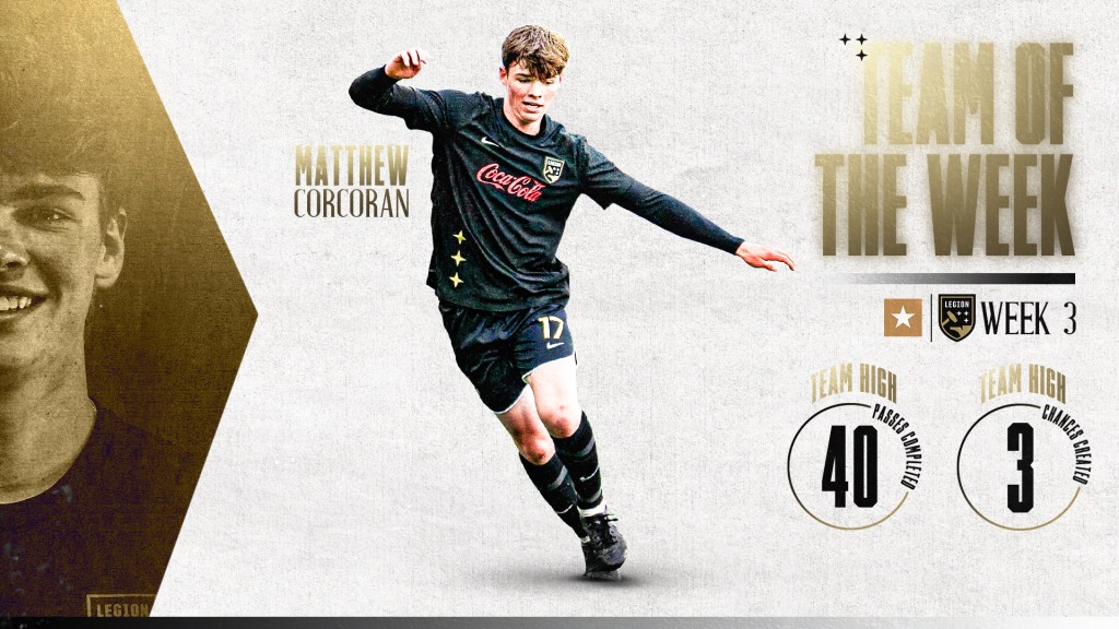 Midfielder Matthew Corcoran Named to USL Championship Team of the Week